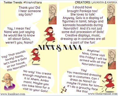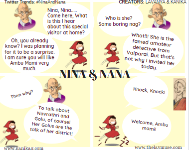 And it’s but to be expected that the festival brings a dash of colour, fun and frolic this month. Nina, Nana, Ambu Mami and other fictional characters in The Lav Muse World look forward to bringing you a trove of mythology themed posts and folk lore around Navrathri and Durga Puja this October in partnership with Kanika, Jayanthi and Suhasini.