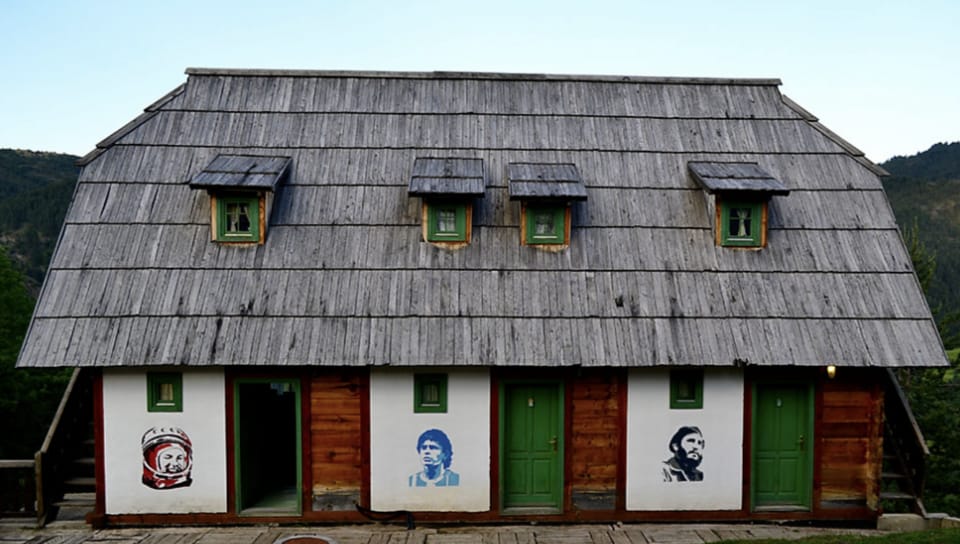 Most Serbians revere Yuri Gagarin, as pioneer of not just space travel but also of stimulating the interest of the local populace in science and it is, but to be expected that he would feature prominently in this little town in carefully curated wall paintings. Fidel Castro features alongside Yuri Gagarin, being one of Kusturica’s personal heroes.